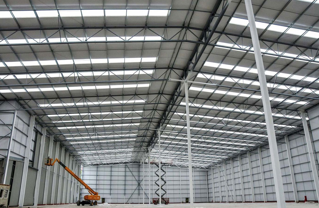Steel Structure Buildings Fabrication and erection of pre-engineered metal buildings (PEBs) ideal for factories, workshops, and agricultural use.